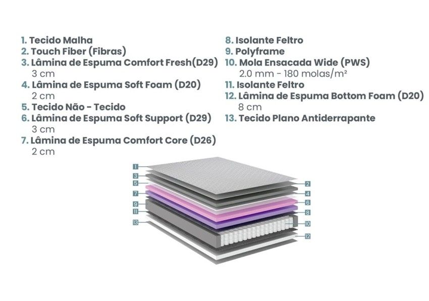 Espuma Exclusiva Ecoflex: Ecofresh, que aumenta a resistência e durabilidade, com mais frescor e conforto