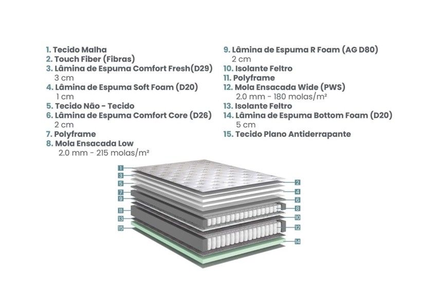 Espuma Exclusiva Ecoflex: Ecofresh, que aumenta a resistência e durabilidade, com mais frescor e conforto