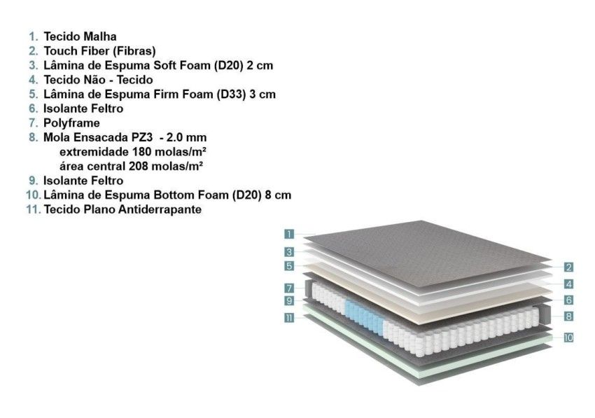 Seu toque é um convite ao relaxamento: a espuma perfilada agrega ao tampo, envolve o corpo delicadamente, aliviando pontos de pressão, estimulando a circulação sanguínea e proporcionando uma sensação única de maciez e aconchego térmico.