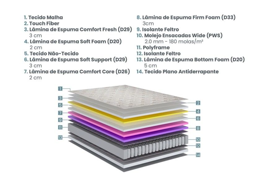 Espuma Exclusiva Ecoflex: Ecofresh, que aumenta a resistência e durabilidade, com mais frescor e conforto