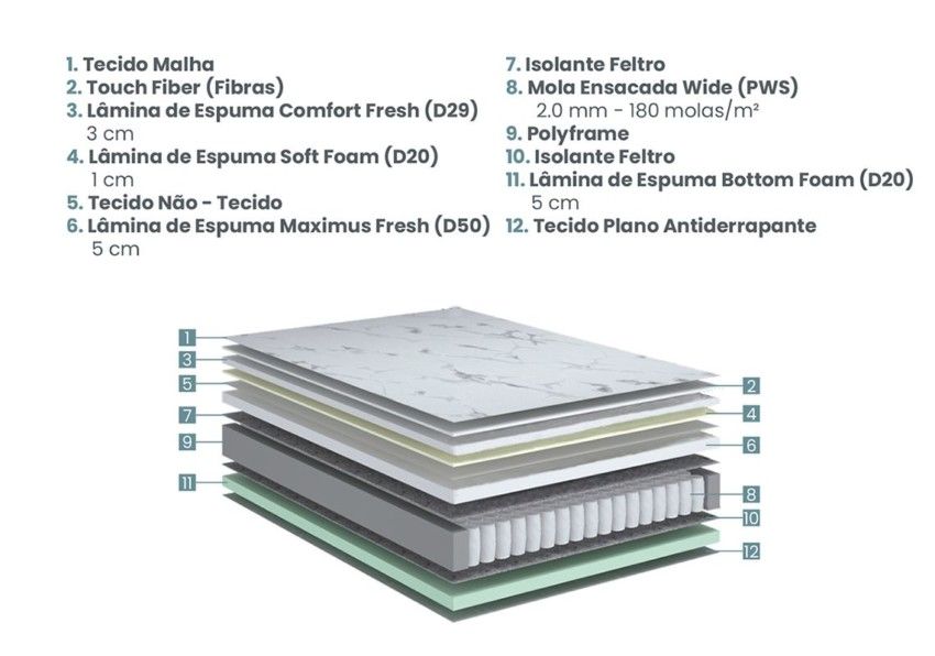 Espuma Exclusiva Ecoflex: Ecofresh, que aumenta a resistência e durabilidade, com mais frescor e conforto