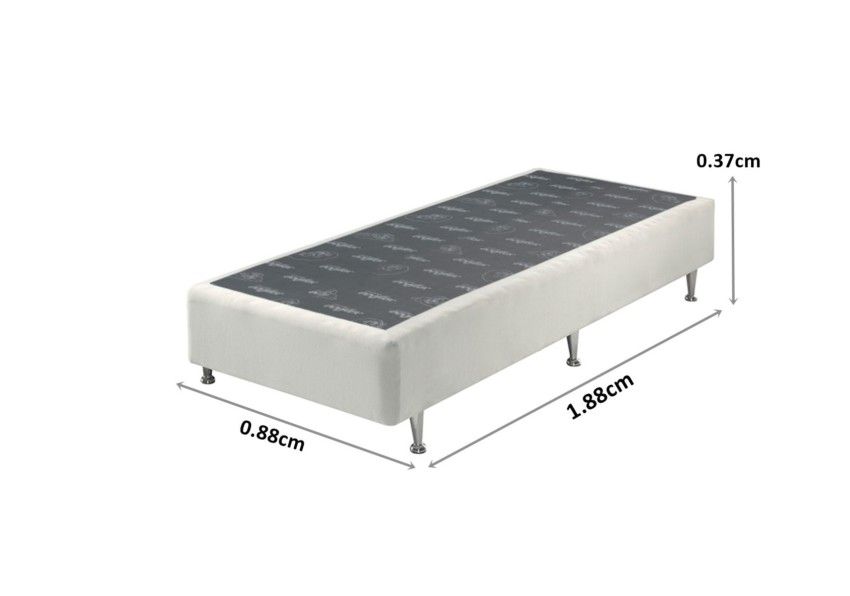 Somiê Universal – Resistência na medida certa para o seu colchão. Somiê para formar o conjunto box. Acabamento lateral em tecido na cor cristal malha, com 37 cm de altura. Tecido superior com antiderrapante que evita que o colchão deslize sobre o somiê. Tecido inferior em TNT de alta gramatura. Pés fixos de alumínio, para maior resistência e durabilidade com 12 cm de altura. Somiê de madeira com acabamento arredondado. Chapa com 4 mm de espessura